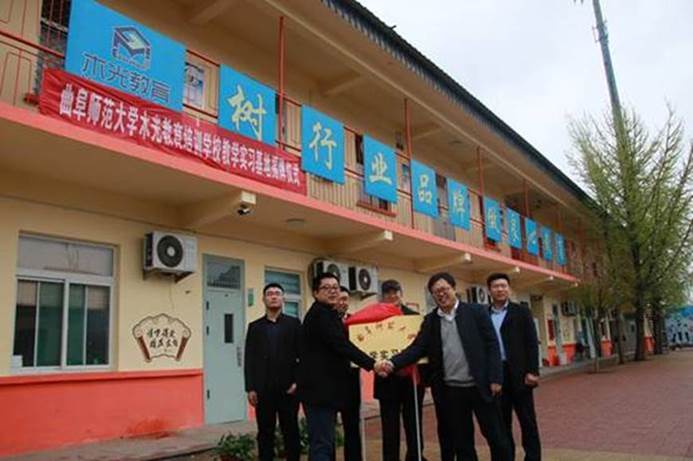 4月9日上午,学院教学实习基地挂牌仪式在德州市木光教育集团平原校区举行。仪式由木光教育集团总经理张天主持,院长杨月伟、党委副书记赵强,木光教育集团董事长郑振铎等参加了仪式。