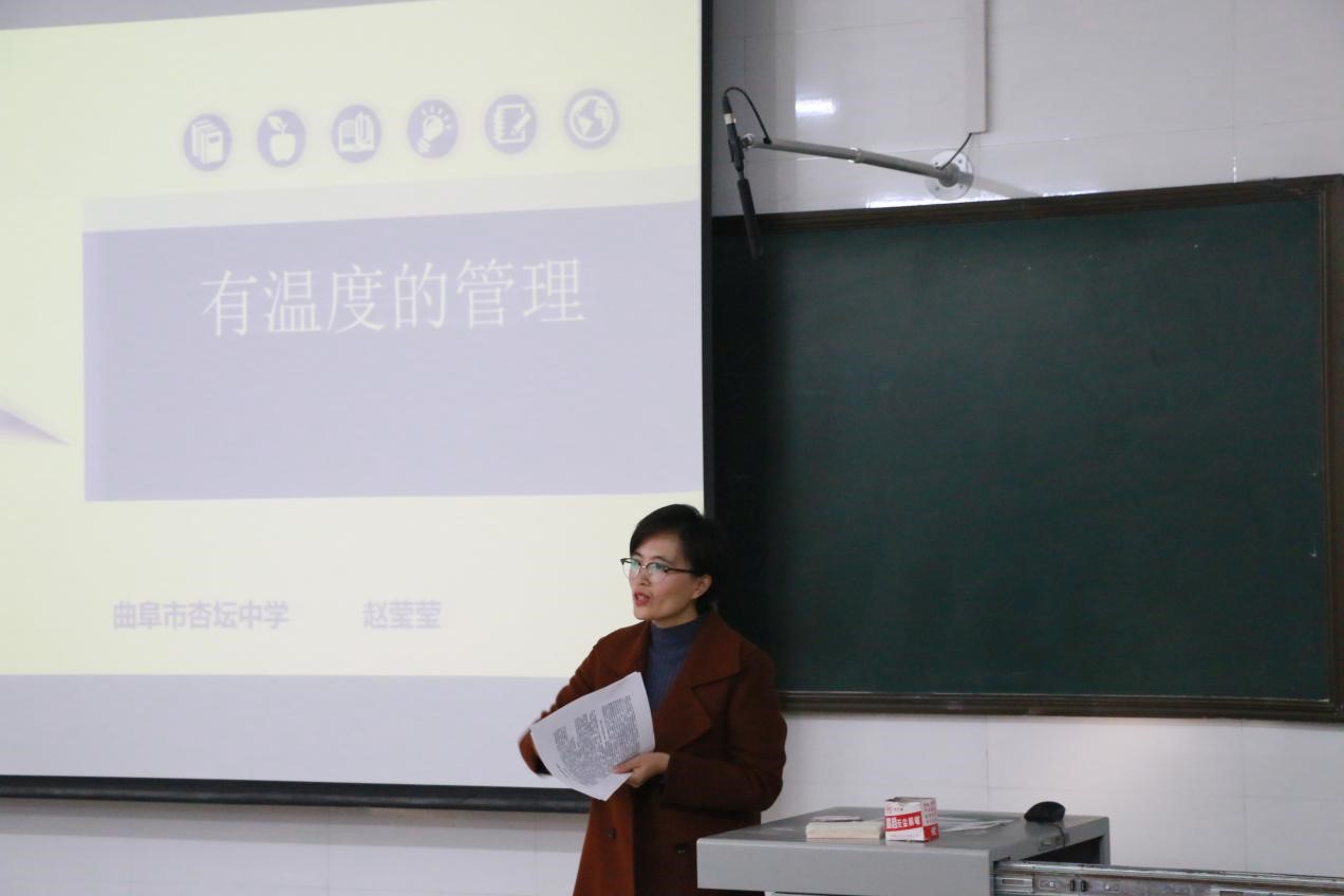 附属中学高三级部主任李杰、济宁市生物学优质课一等奖获得者杏坛中学赵莹莹两位老师为同学做了题为“让青春在讲台上闪光”和“有温度的管理”的报告。学院部分老师以及2018级全体生物科学师范生参加本次活动。学院副院长王仁君主持了本次活动。