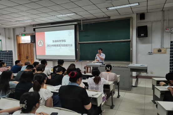 2020级生物科学专业的师范生积极投身于教育事业的实践中,顺利完成了为期一个学期的教育实习。为总结实习经验,探讨实习工作的成果和改进方向,为日后的教育实习工作做好铺垫,6月26日上午,学院于综合楼101教室召开2023年教育实习总结大会。学院教学副院长燕艳、全体实习指导教师及所有实习生参加了总结大会。2020级辅导员杨申振主持了本次活动。