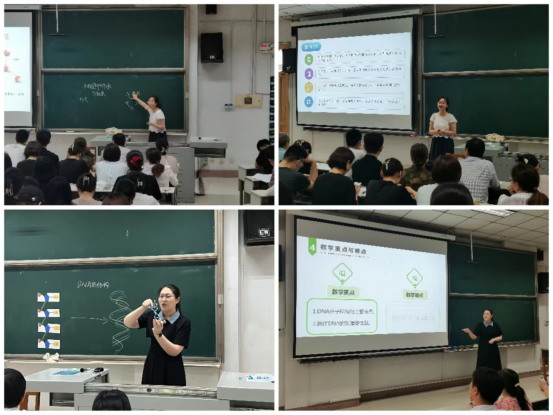 王铭钰、沈培涵两位同学作为实习生优秀代表在大会上进行了精彩的教学展示。王铭钰同学讲授了高中生物学《DNA分子的结构》,沈培涵同学讲授了高中生物学《细胞中的水》。两位同学以生动严谨的语言、清晰规范的板书、层次清晰的讲解、展现了天天a片