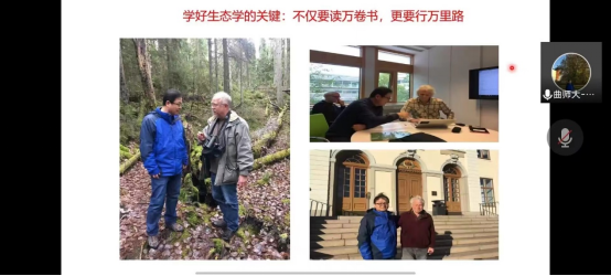 王庆贵教授以“话说生态学:起源与发展”为题作专场报告,详细介绍了生态学的基本内涵,生态学的起源、现状与未来发展趋势,对生态学发展前景进行了展望。他认为,学好生态的关键在于“不仅要读万卷书,更要行万里路“。新时代的大学生要继承发扬以国家命运为己任的爱国主义精神,继承发扬以爱国主义为底色的科学家精神,保持深厚的家国情怀和强烈的社会责任感,勇担重任、勇攀高峰,把人生理想融入到实现中华民族伟大复兴中国梦的奋斗中。