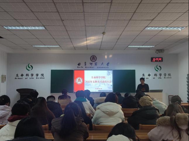 2025年支教实习动员大会于生物楼232顺利举行。学院党委副书记王建龙、副院长燕艳、2022级辅导员刘文静、张帅以及支教实习指导老师出席本次动员大会。刘文静主持了本次活动。