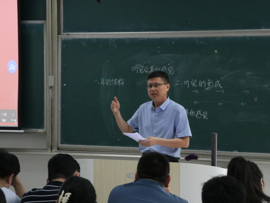 田俐蓉同学带来了初中生物课程《听觉及其他感觉》的教学片段展示,她以诗词导入,通过“一镜到底”式的串联讲解,详细阐述了耳的结构及听觉形成的过程。