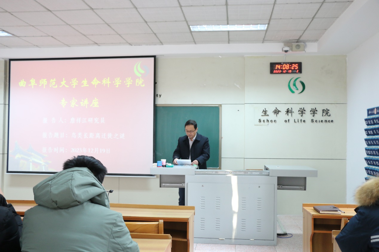 师生做了题为“鸟类长距离迁徙之谜”和“鸟类性选择研究”的学术报告。报告会由副院长王庆贵教授主持,院长王仁君教授及生科院百余名师生参加了此次活动