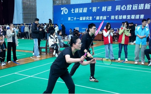 第二十一届研究生“和衷杯”羽毛球师生联谊赛举办。比赛于2025年10月24日下午在体育科学学院球类馆隆重开幕,比赛以师生联谊的混合团体赛形式开展,吸引了全校26支队伍、364名师生参赛。