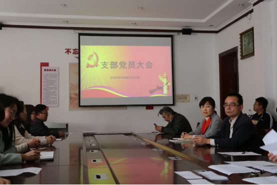 教工党支部全体党员大会在生物楼208会议室举行。会议由党支部书记郭永峰主持,党支部全体成员参加。