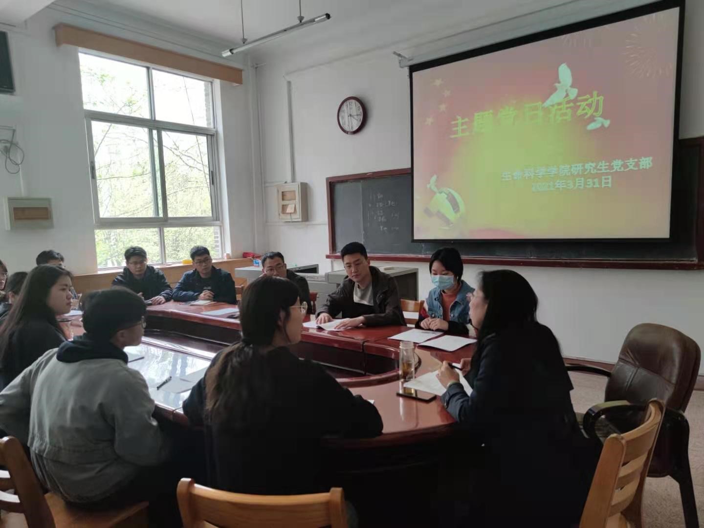 研究生党支部在院223会议室开展庆祝建党100周年---观看影片《建党伟业》主题党日活动,本次活动由党支部书记燕艳同志主持,全体研究生党员参加。