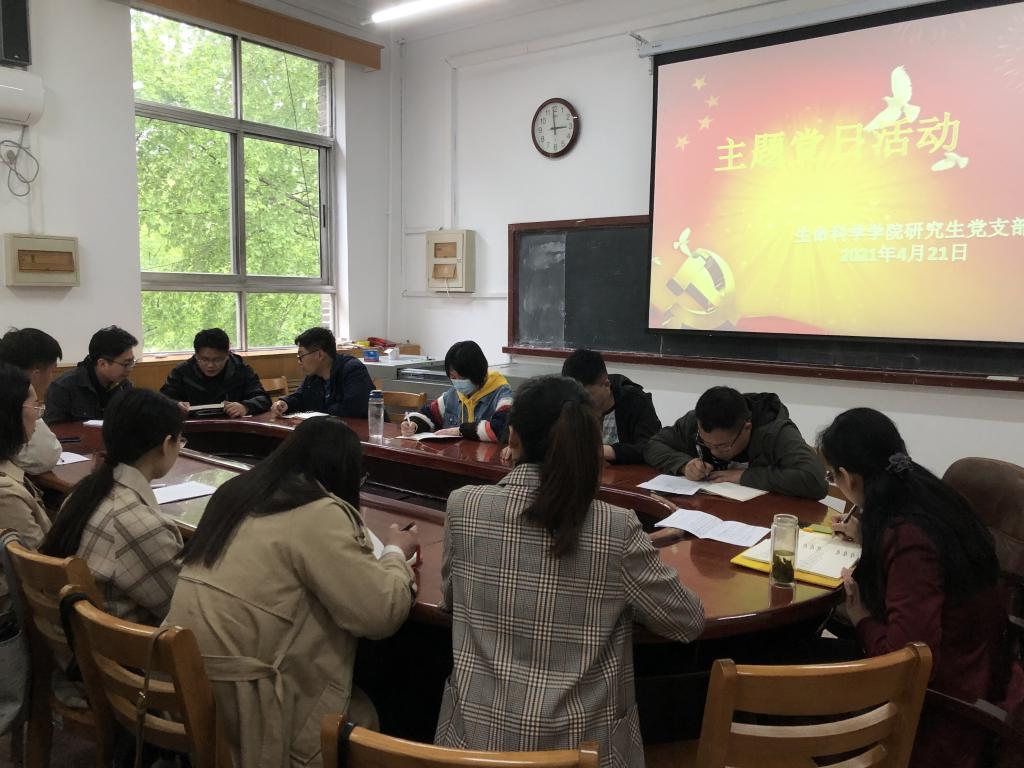 2021年4月21日下午,学院研究生党支部在院223会议室开展精读一本党史著作的“十个一”活动,本次活动由研究生党支部书记燕艳同志主持,全体研究生党员参加。