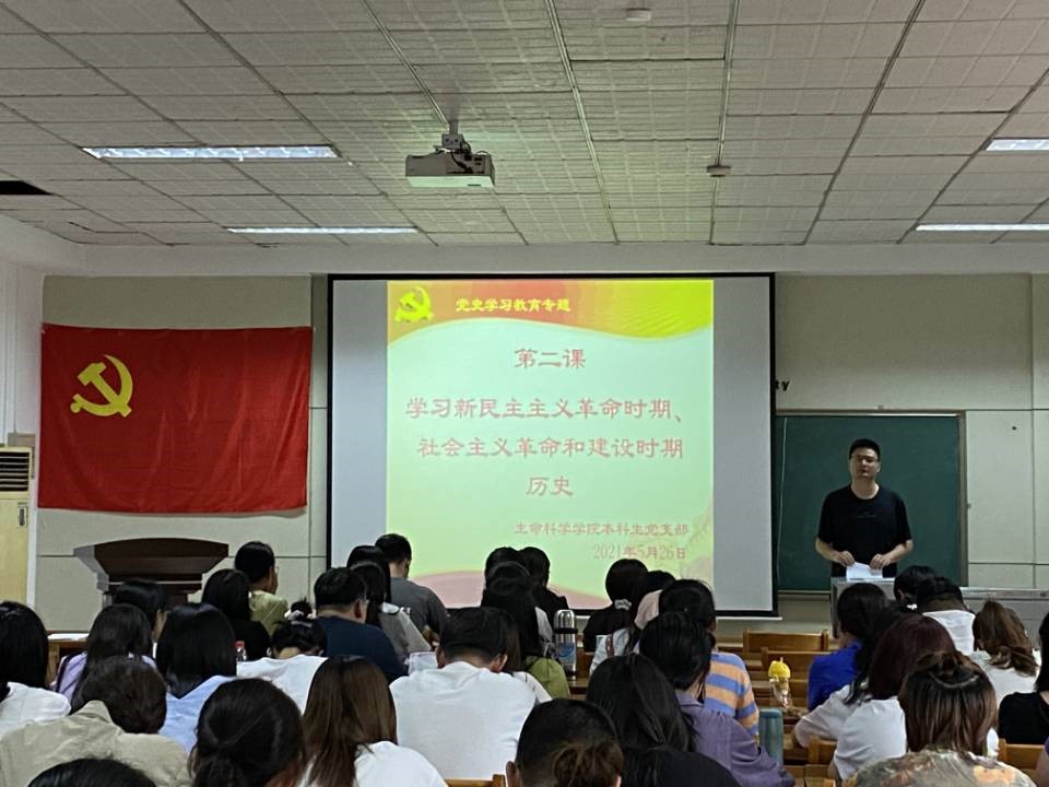 本科生党支部于生物楼232组织开展党史学习教育第二次专题学习,支部全体党员共同学习了新民主主义革命时期、社会主义革命和建设时期的历史。本次活动由党支部书记杨申振同志主持。