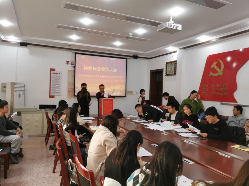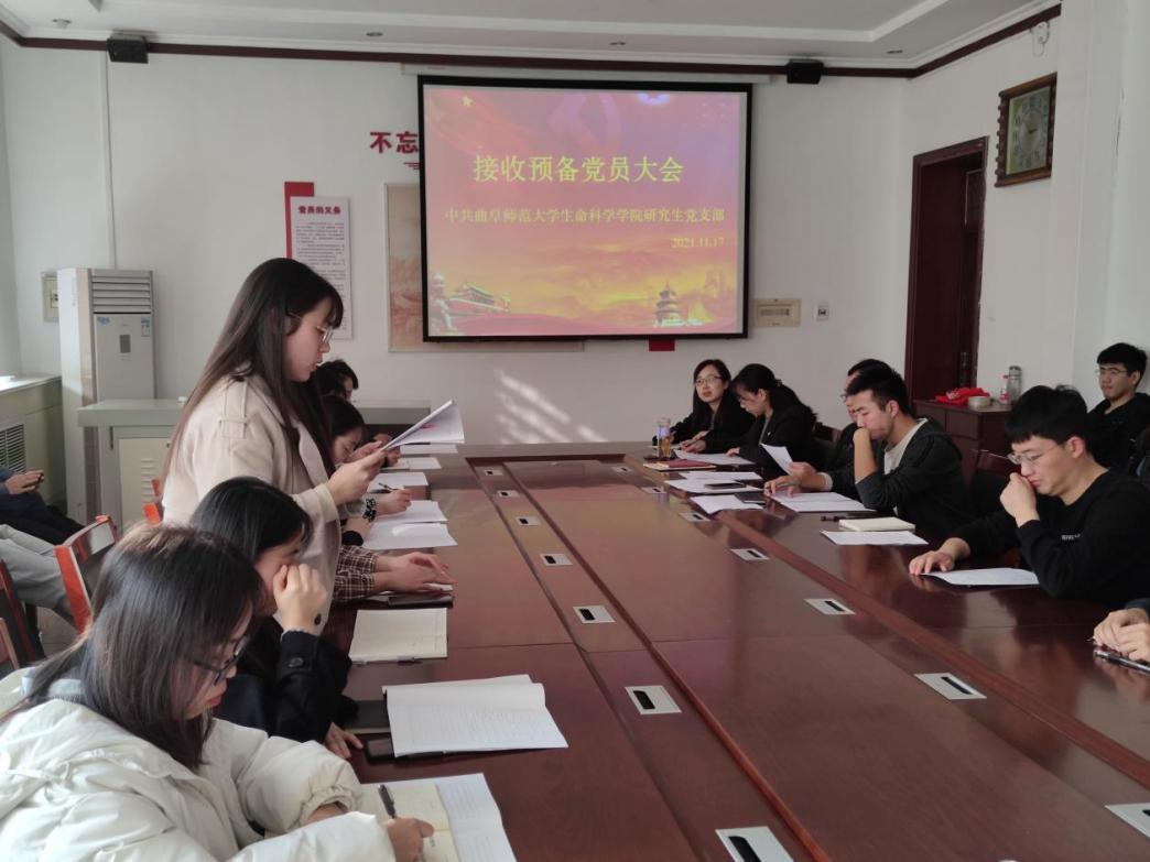 研究生党支部于2021年11月17日下午3点在生物楼208党员活动室召开接收预备党员大会。会议由研究生党支部书记燕艳同志主持,全体研究生党员参加,学院团委书记刘文静列席此次会议。