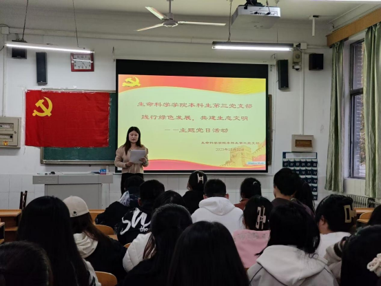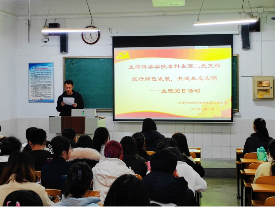 本科生第一党支部、第二党支部和第三党支部分别于生物楼232室、229室和233室举办“践行绿色发展,共建生态文明”主题党日活动。会议分别由党支部书记杨申振同志、赵连栋同志、袁晓涵同志主持。