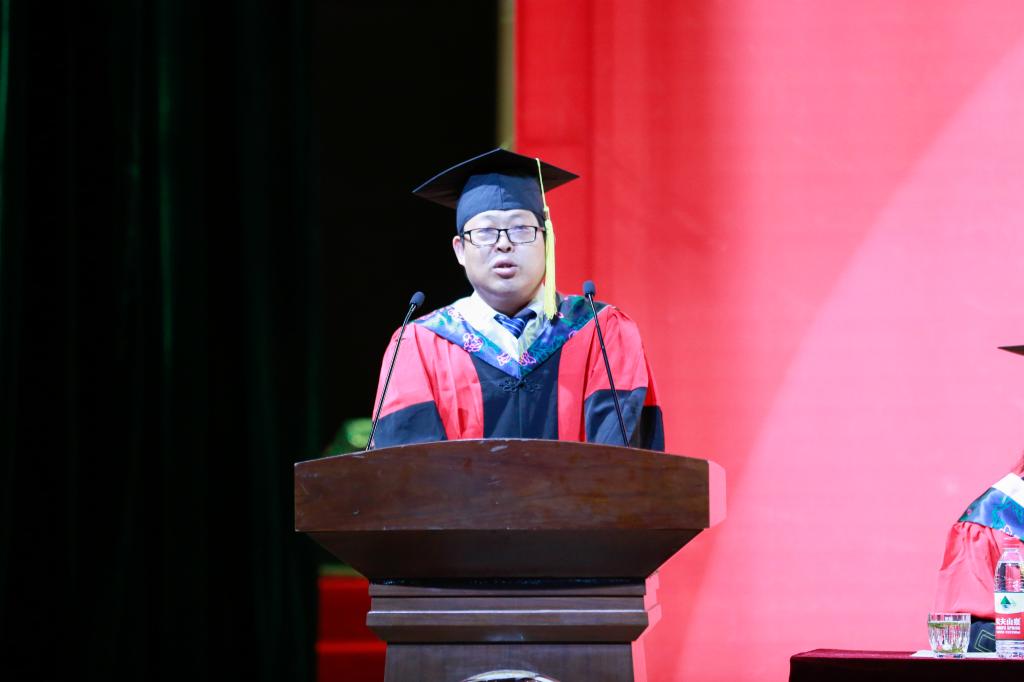 院长杨月伟教授向毕业生发表了热情洋溢的讲话。他首先向圆满完成学业的同学致以热烈祝贺。他指出,今年的毕业典礼意义非凡,在党的百年华诞之际开启人生崭新航程,是青春征程中的一件喜事、幸事、大事,毕业学子生逢盛世,肩负重任!他向即将起锚远航,奔赴远方的毕业生寄语三点希望,一是无论何时,无论在什么样的岗位,都要保持不懈的学习动力;二是始终要有底线思维和风险意识;三是要时刻保持积极的进取精神、良好的竞争意识和平衡的心态。最后,他深情寄语毕业生,母校永远是你们避风的港湾和坚强的后盾,最诚挚地、最深切地祝福你们、支持你们、守候你们!祝愿所有毕业生一帆风顺,前程似锦!