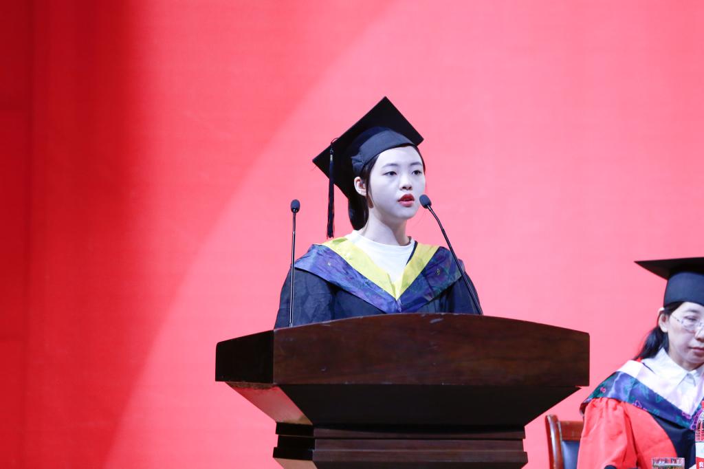 本科生毕业生代表江丽婷同学在发言中谈到,“四年的曲阜求学经历让我领悟到只有在努力中才能茁壮成长、只有永远保持科学创新激情,敢于创新实践,才能不断突破。作为本科生的我坚信,秉承母校‘学而不厌’的精神,打好扎实的专业基础,才能拥有更远的未来。锲而不舍,金石可镂,百折不饶,未来可期。”