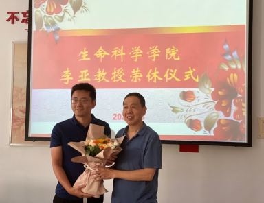 “桃李不言,下自成蹊”。在李亚教授培养和影响下,人体及动物生理学教研室的青年教师迅速成长起来,他们接过李老师的育人接力棒,继续为学院发展贡献力量。为表达学院对李亚教授的感激之情,青年教师代表窦海龙副教授为李亚教授献上鲜花。