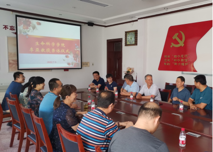 李亚教授一生奉献教育的真实写照。李亚教授于2022年6月底光荣退休,离开了工作三十八年的教学岗位。7月8日下午,学院在生物楼208会议室为李亚教授举行了温馨的荣休仪式。学院领导班子、各教研室主任、院工会、人体及动物生理学教研室全体成员、部分青年教师代表参加了本次活动。荣休仪式由院长助理燕艳主持。
