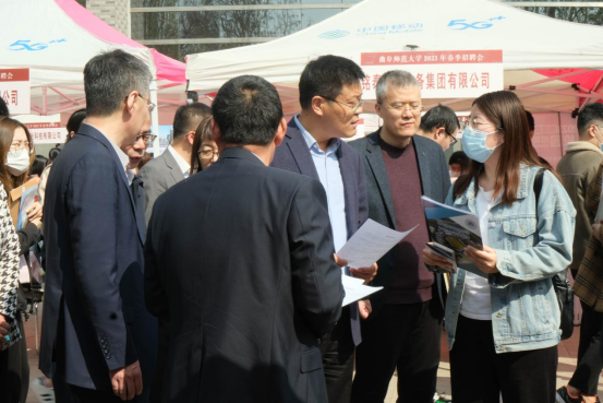 学校党委副书记卢国强、学院党委书记李志广、院长王仁君亲临会场,对招聘会参会单位进行了走访调研,与用人单位负责人深入交谈,了解行业动态、招聘需求、用人标准和薪资待遇等。同时,与毕业生亲切交流,鼓励学生找准定位,树立信心,积极求职。