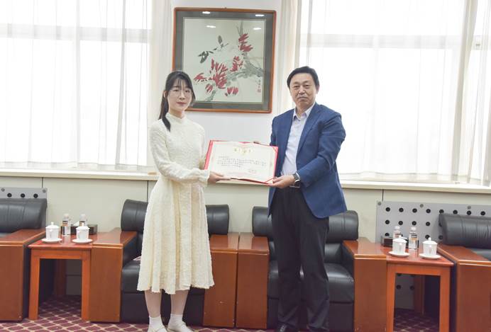 2021级本科生李淑雅同学,并为她颁发“热心助人最美大学生”荣誉证书。学校党委副书记卢国强,党委常委、宣传部部长孙祥广出席活动。