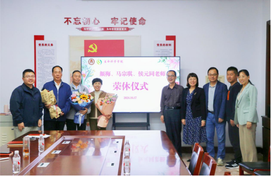 在208会议室为颜梅、马宗琪、侯元同三位老师举行了温馨而隆重的荣休仪式。学院党委书记李志广、院长王仁君等领导班子全体成员、工会、相关教研室、实验室及部分青年教师参加了此次活动。活动由副院长燕艳主持。