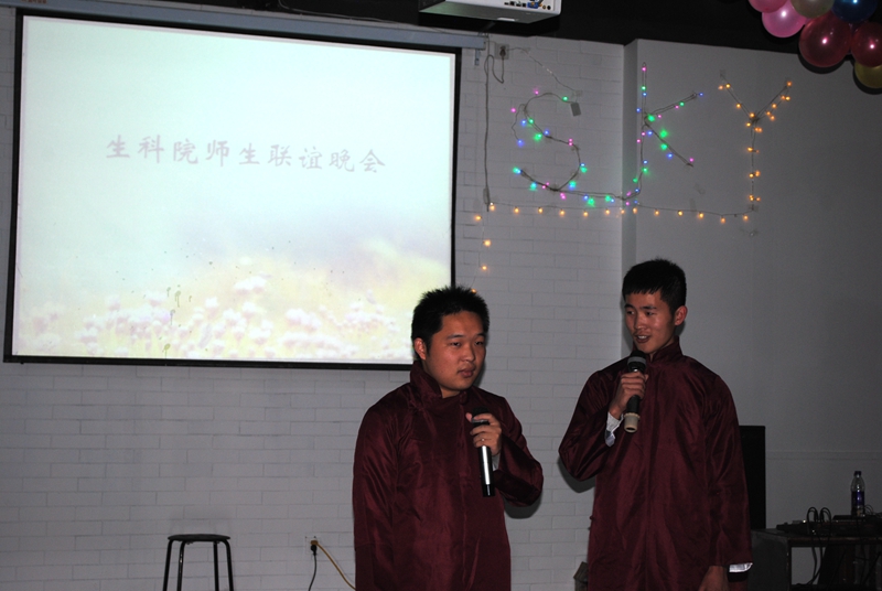 一系列的包饺子比拼过后,晚会正式开始。由文艺部带来的开场舞《失恋阵线联盟》点燃了全场观众的激情;女生部带来的动听音乐《带你去西海旅行》扣动着师生们的心扉;一出《他比我更合适》的音乐剧让我们感受到了音乐与小品的完美融合;小品《TF girls》更是让师生爆笑连连。随之而来的是舞蹈《lue me》、《歌曲串烧》、小品《大话女儿国》和歌舞《咖喱咖喱》。让人回想自己高中的舞台剧《十年》,热辣劲爆的《舞蹈串烧》,诙谐幽默的朗诵《摩擦的胖子》无不博得同学们的阵阵喝彩。小品《社会实践那点事儿》则充分体现了当代大学生的诚实的优良品质。相声《你的名字》逗的同学们捧腹大笑。情景剧《一堂课》栩栩如生,真实的再现大学课堂。张誉琳小朋友的《我的楼兰》带我们穿越时空,回到那千年之前,揭开被黄沙所掩盖的秘密。徐书记的《我和我的祖国》、孔凡华老师的《爱琴海》、赵书记的《外婆的澎湖湾》、孔东升老师的《驿动的心》、姜曰水老师的《精忠报国》,以及徐书记夫妇的合唱《为了谁》,一首首经典的歌曲都表达了老师们对天天a片