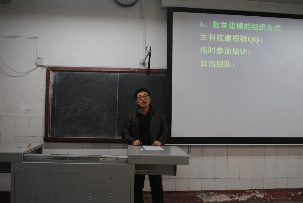 刘洪铎老师做动员,积极引导和鼓励学生学以致用、开拓创新。随后,邱念伟老师对国家组织的数学建模大赛做了介绍,并对准备数学建模应有的心态、方法、技巧和策略等方面做了讲解。接下来,宋玉光老师也就数学建模大赛又做了进一步的精彩说明,使得同学们对数学建模的热情被大大激发了出来。最后,上一届数学建模大赛优秀学生代表蒋艳红、吴晨晨、丁彦之等多位同学就自己的亲身经历和参赛经验也进行了介绍,令同学们受益匪浅。老师和同学们对数学建模大赛做出的系统全面的介绍使准备参赛的同学们更有信心。