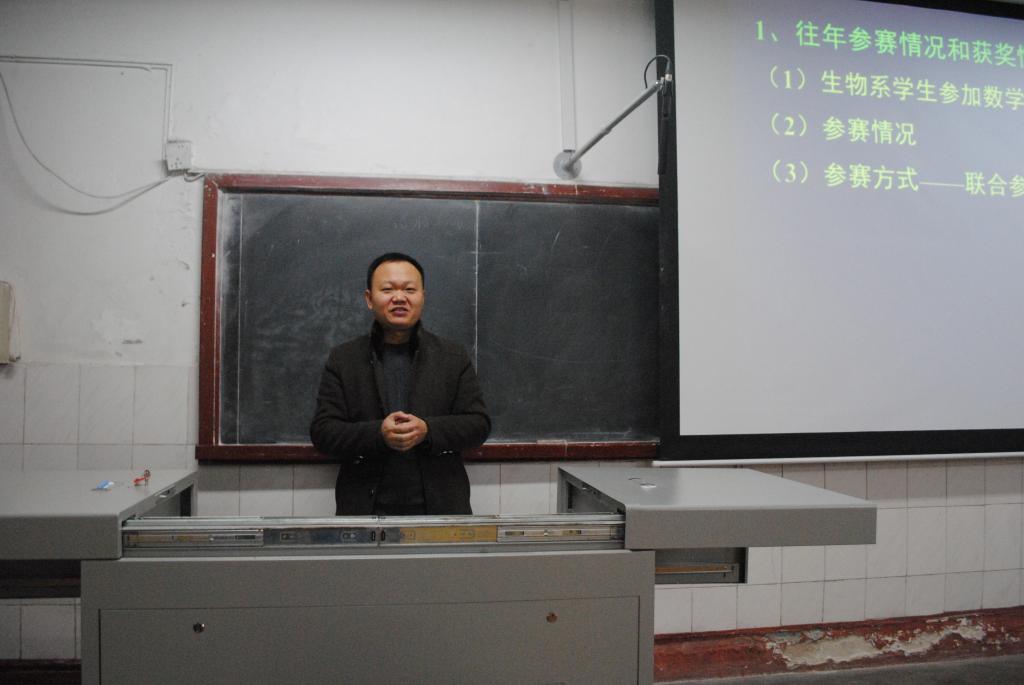 团委学生会于生物楼阶梯教室举办了数学建模大赛动员会,出席本次会议的有团委书记刘洪铎,数学建模大赛优秀指导老师邱念伟老师和宋玉光老师。