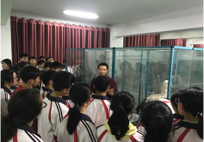 参观中同学们表现出很高的热情,看着各式各样熟悉或陌生的生物标本,听着讲解员传授专业的生物学知识及各种相关的小故事,他们深深地投入其中,被奇妙的生物世界所吸引,好奇地询问猜测,希望获得更多的生物知识,了解更多可爱的生灵。他们充满智慧的双眼流露出对生命的敬畏,朝气青春的脸上洋溢着自信,挂着满足的笑容。