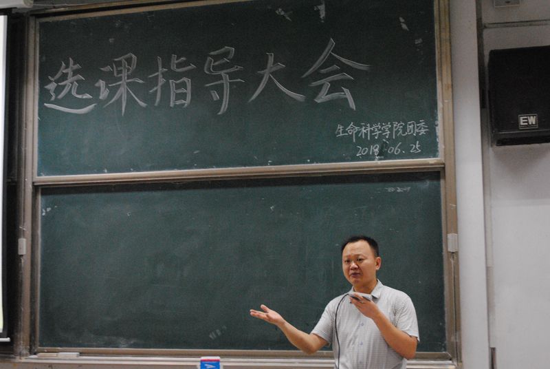 教工支部、学生支部、团委学生会于6月25日晚在综合楼101教室举行了选课指导大会,参与此次活动有邱念伟老师,李玉建老师和窦海龙老师以及2017级生物科学类的全体同学。