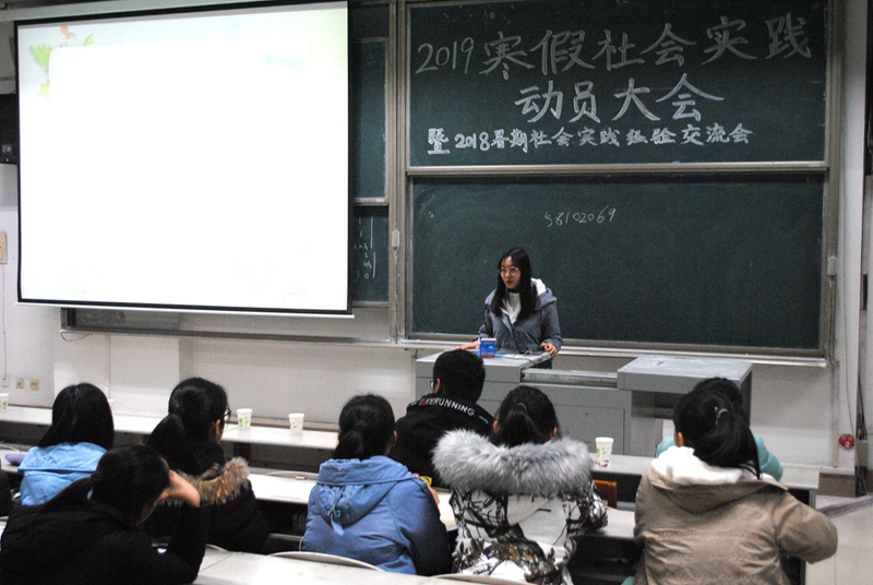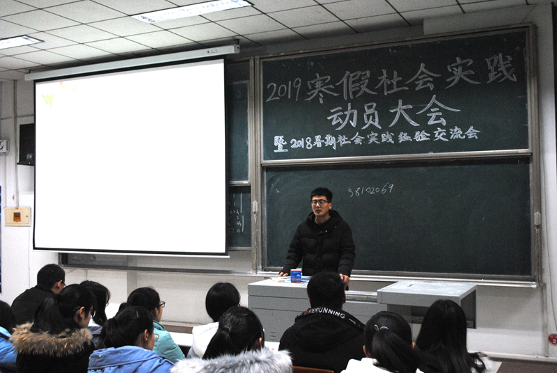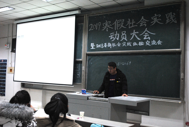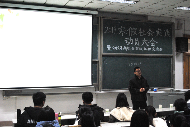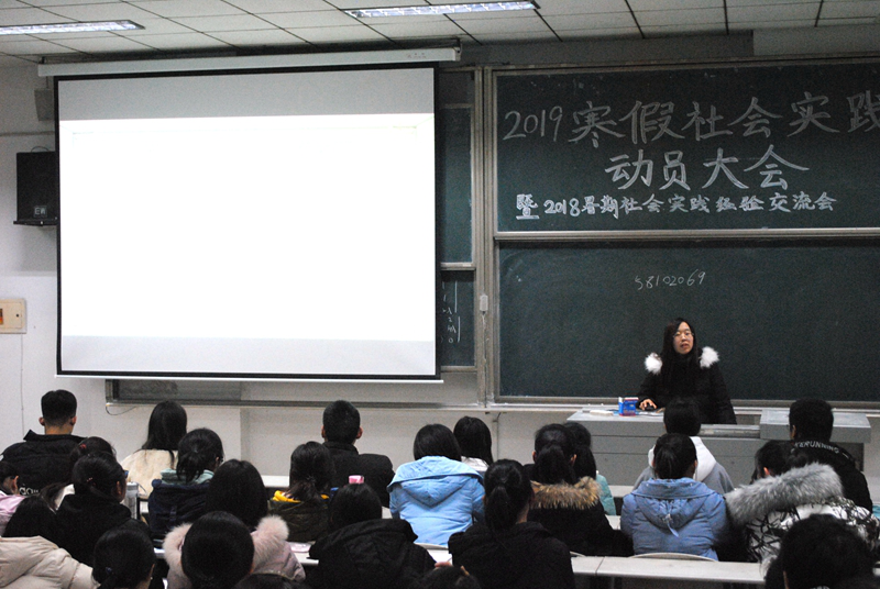 团委学生会于12月19日下午在综合楼106教室举办了2019寒假社会实践动员大会,学院团委老师、学院学生会主席团成员到场。