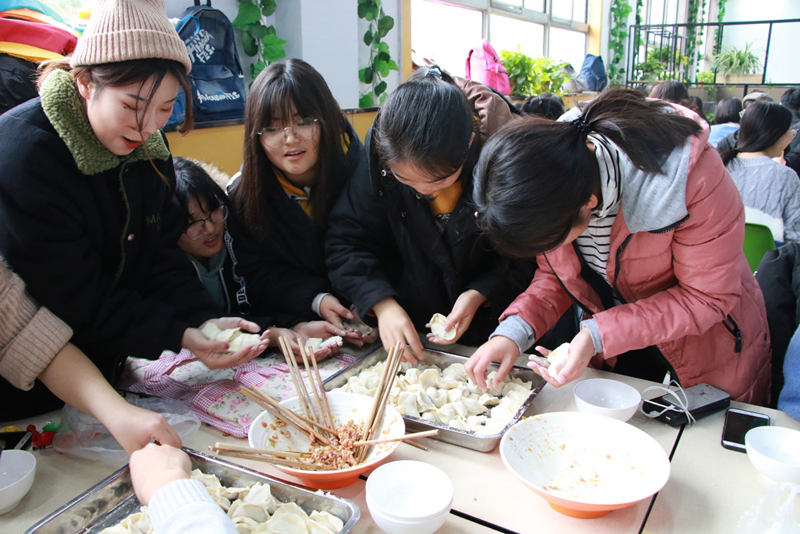 活动伊始,同学们依次有序地坐到自己的位置上,开始活动的第一项环节:竞速包饺子。同学们在有限的10分钟内尽最大的可能包了最多的饺子,各部门争分夺秒,快而不乱。随后进行了木头人包饺子以及击鼓传花的小游戏,带动了现场的气氛。包饺子过程中也穿插了同学们精心准备的节目表演。悠扬动听的歌声引得场上掌声接连不断。各部门部长的走秀表演将全场气氛推向高潮,精心设计的衣服花样百出,各式各样的造型吸引着所有人的目光,让大家连连叫好。