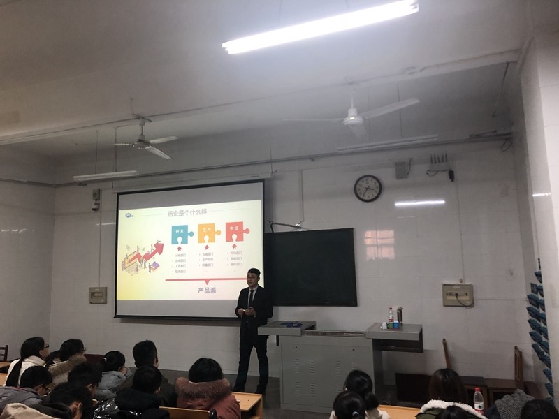 团委邀请恒瑞医药总部人资中心祖楠经理在生物楼102教室做“只有创新,才有未来”创业指导报告,同时进行博士、硕士及本科毕业生的招聘活动。
