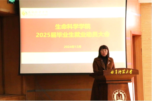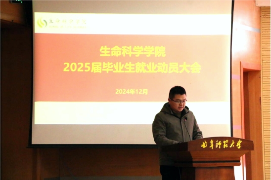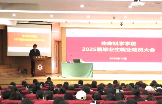 在孔子会堂召开2025届毕业生就业动员大会。党委书记李志广、院长王仁君、党委副书记王建龙、院长助理赵超、学生工作处就业指导中心主任石璐、学院植物生理教研室主任邱念伟、2021级班主任出席会议,2025届全体毕业生参加,毕业生辅导员杨珺斐主持本次会议。