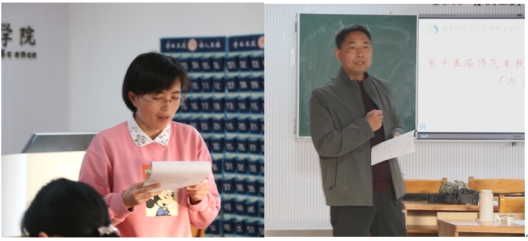 副院长燕艳、教学论教研室主任郭永峰、姚淑敏、刘柏玲、甘延东老师担任本次比赛评委。