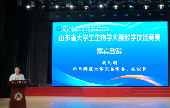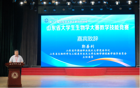 师生的辛勤付出表示敬意,并对赛事的圆满举办表达了祝福。他指出大赛的举办为参赛者提供了展示才华的平台,促进了高校间的交流与合作,为山东省生物学优秀师范生的培养注入了新活力。