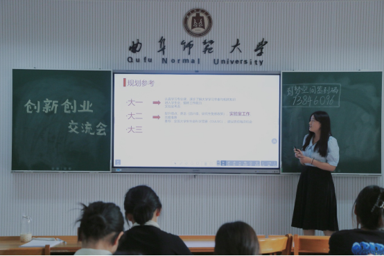 活动首先由杨文静师姐为同学们讲解创新创业比赛的一些内容,杨文静师姐,专业排名前5%,多次获得奖学金,先后多次获得创新创业类比赛省级以上奖项。杨文静师姐为同学们提供了很多学习和竞赛上的宝贵经验,并解决了很多同学们的困惑。