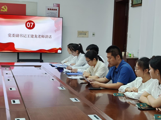团委副书记荆千雨带领全体团员宣誓。坚定的入团宣誓,激励着全体团员铭刻荣光、勇往直前,矢志不渝担当使命。团委副书记赵欣阳宣读了《团章》中有关团员义务和权利的条款,号召全体团员牢记自己的身份和使命,严格要求自己努力学习、积极工作、服务人民、奉献社会。