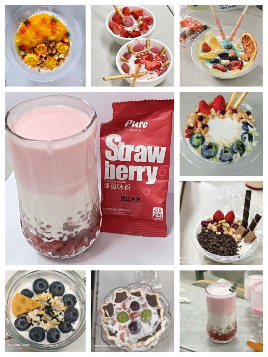 学子的创新能力和无限潜力。在大家尽情享受创作乐趣的同时,活动现场还设置了品尝和交流环节。参与者们相互品尝彼此制作的酸奶,交流制作经验和口感体验并对彼此的酸奶进行美观和口味的双重评分。大家在交流中互相学习,共同成长,进一步加深了对酸奶制作和微生物发酵知识的理解。此次活动在同学们的热烈掌声中圆满结束。