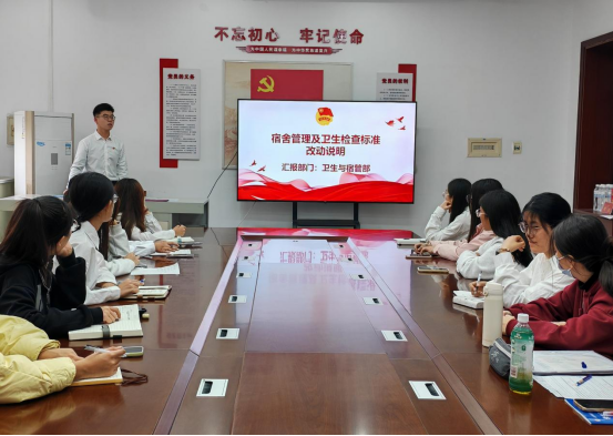 卫生与宿管部负责人领学了《学生公寓管理规定》(曲师大校字〔2024〕37号),明确了新规定对于住宿管理、卫生管理、治安秩序管理等方面的具体要求。结合前期宿舍文明建设存在的问题以及最新卫生安全检查标准,对违反学生公寓管理规定的几类情形进行了重点强调,引导同学们切实安全意识,把学生宿舍建设成安全、文明、和谐、卫生的学习和生活场所。