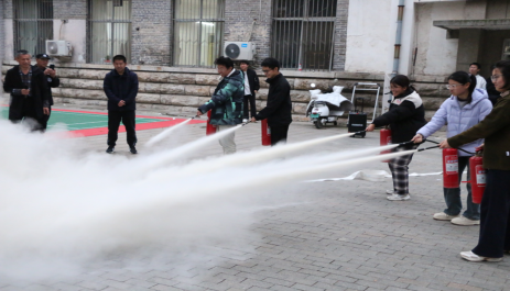最后,刘淑朋介绍了正确使用灭火器的技巧,同学们亲自上手操作灭火器,进行灭火演练。