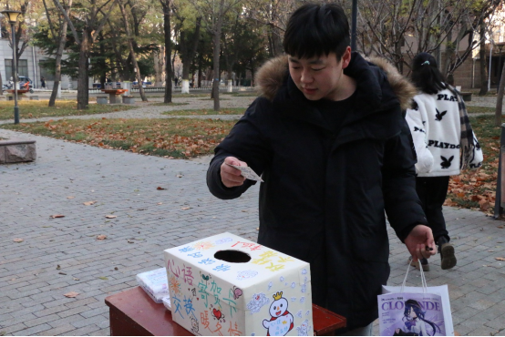 本次的活动以线下方式进行。活动举办前期,由工作人员布置场地并熟悉工作流程,将贺卡、贺卡箱、彩笔、剪刀和胶水等道具准备齐全。随后,参与者在工作人员的热情引导下,抽取贺卡箱中的贺卡,并将自己的温暖和创意写在贺卡上,放入贺卡箱中供其他参与者抽取。在活动过程中,有人抽取贺卡,绽放笑容;有人写下贺卡,传递暖冬祝福。无论是对远方亲友的思念,还是对身边同学的感恩,都能借由一张精心挑选或亲手制作的贺卡得以倾诉,现场气氛温馨又充满感染力。活动最后,工作人员对活动场地进行了清洁整理并拍摄集体合照,本次活动圆满结束。