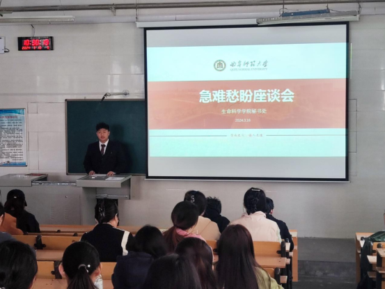 “急难愁盼”座谈会于生物楼128教室顺利开展,各班学生代表参加了本次座谈。