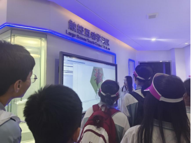 随后,志愿者们带领师生来到东校区,参观了生命科学实验室的工业生物酶催化实训室和现代生物学国家级虚拟仿真实验教学中心。实验室内现代先进的实验仪器和设备为师生们提供了一个直观了解科技前沿和科研实验的平台。参观过程中,研究生党员不仅为来访师生们详细介绍了实验室精密的科研仪器、创新的实验装置,还与他们分享了科研工作的经验和心得。通过参观交流,来访师生对科研工作的意义和价值有了更深入的了解,进一步激发了中学生对科学研究的兴趣和热情。