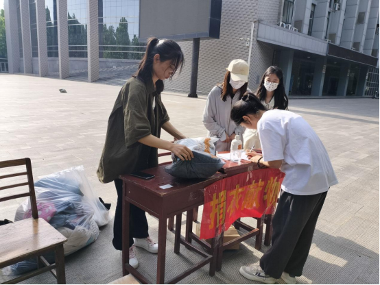 团委、学生会在生物楼、大学生活动中心开展了“‘衣’旧暖心”之捐衣献物志愿服务活动。