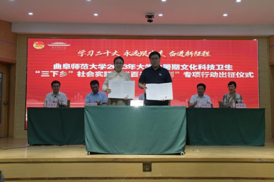 与石门山镇于孔子会堂举行校地共建大学生社区实践基地签约授牌仪式。