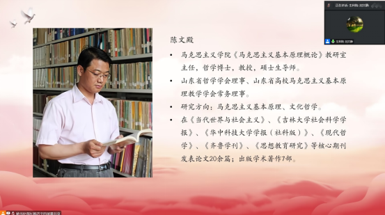 在线上开展“青马工程”大学生骨干培训班第四讲。本次课程邀请到了我校马克思主义学院陈文殿教授为青马学员授课培训,学院团委书记刘文静、“种子宣讲团”成员以及青马工程全体学员参加了本次培训学习。