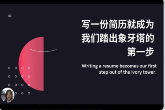 比赛伊始,由主持人介绍本次活动的规则。随后,参赛者们陆续进行线上答题活动,并进行线上视频简历介绍。本次活动虽于线上进行,但同学们的热情却丝毫未减。参赛者的简历设计精美,思路新奇,面试视频中,参赛选手表现的沉着冷静,声音洪亮,落落大方,极大地展现了青春之美,也展现了天天a片