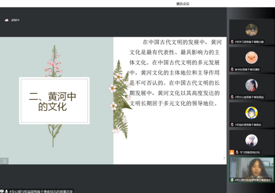 于12月4日在线上举办以“触摸黄河文化根源,建设文明生态家园”为主题的传统生态智慧学习交流研讨会。院团委学生会各部门人员参加了本次会议。