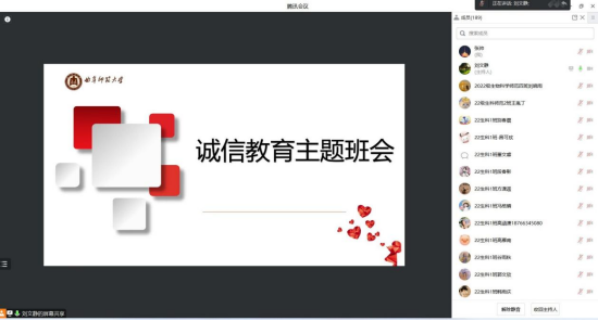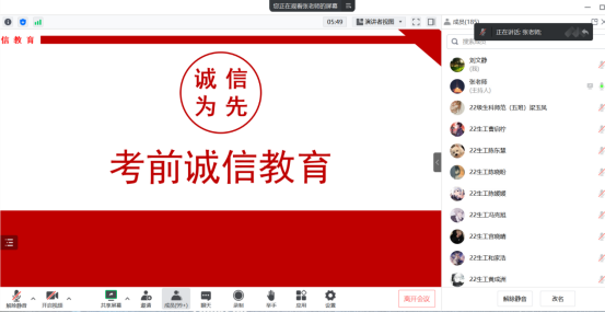 为进一步端正考风,严肃考纪,切实提升学生的诚信品质,天天a片 各年级于2023年2月7日通过腾讯会议召开诚信教育主题班会。