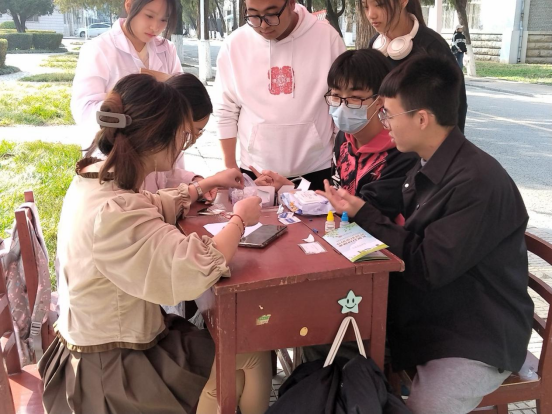 为了更好地服务大家,志愿者们都经过了严格的培训。志愿者们准备了血压计,血型定型试剂,酒精棉片等物品,为本次活动开展做好充分准备。在本次活动中,同学们严格遵照安全程序,有条不紊地进行着消毒、采取血样、滴定血清等工作。测量血压的同学一边认真地为师生们测量血压,一边耐心地为其讲解血压是否正常,高血压、低血压的症状等基本常识。最后将所测的血型血压情况汇总分析,完成了一个小范围的健康调查。