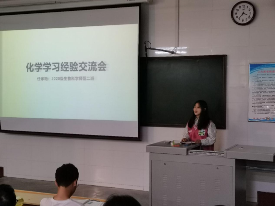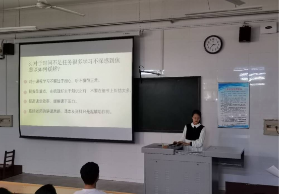 分享会主要围绕适应大学生活、学习与学生工作、创新创业竞赛、课程学习四个主题展开。大会伊始,王宣和高颖慧从学习生活、宿舍生活等方面为大家细致地讲解了如何快速适应大学生活,为新生们的大学之路点起一盏通向未来的明灯。随后,孙亚楠从大学生活出发,强调了学习成绩和综合发展的重要性,并分享了平衡学习与学生工作的宝贵经验。紧接着,张梦琦介绍了科研能力提升、科创比赛信息及个人的相关经验体会。最后,任孝艳为大家解答了关于化学课程学习的疑惑,最后大家自由提问环节,在充分的交流解答后分享会落下帷幕,新生同学们纷纷表示通过分享会大大减轻了自己对大学迷茫感。