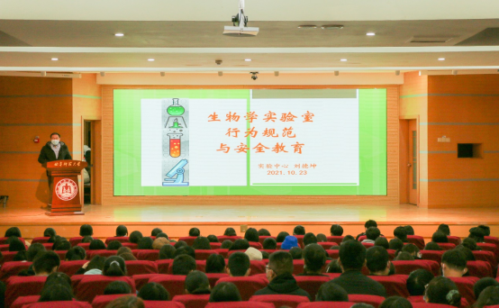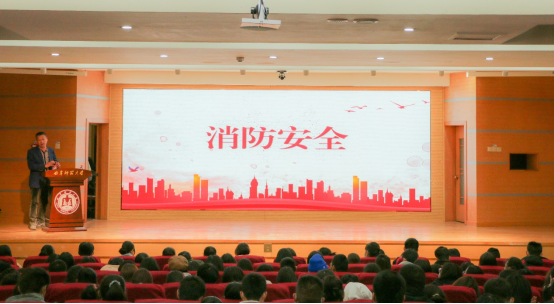 新生安全教育大会在孔子会堂召开。学院实验室负责人刘德坤老师、校保卫处消防科刘淑朋老师以及2021级全体同学参加了本次会议。